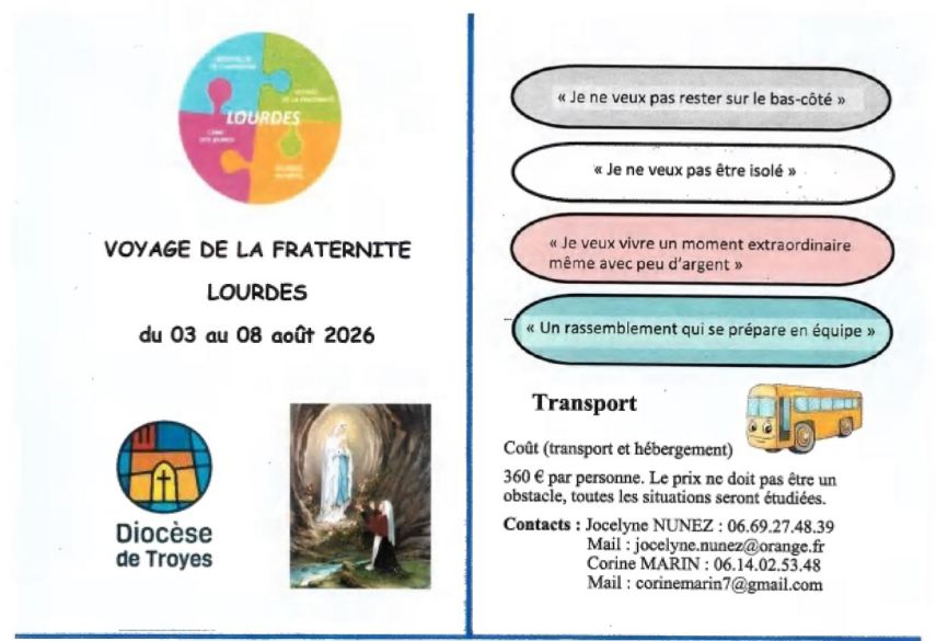 du 3 au 8 août 2026 ,organisé par le pôle Solidarité du diocèse de Troyes.